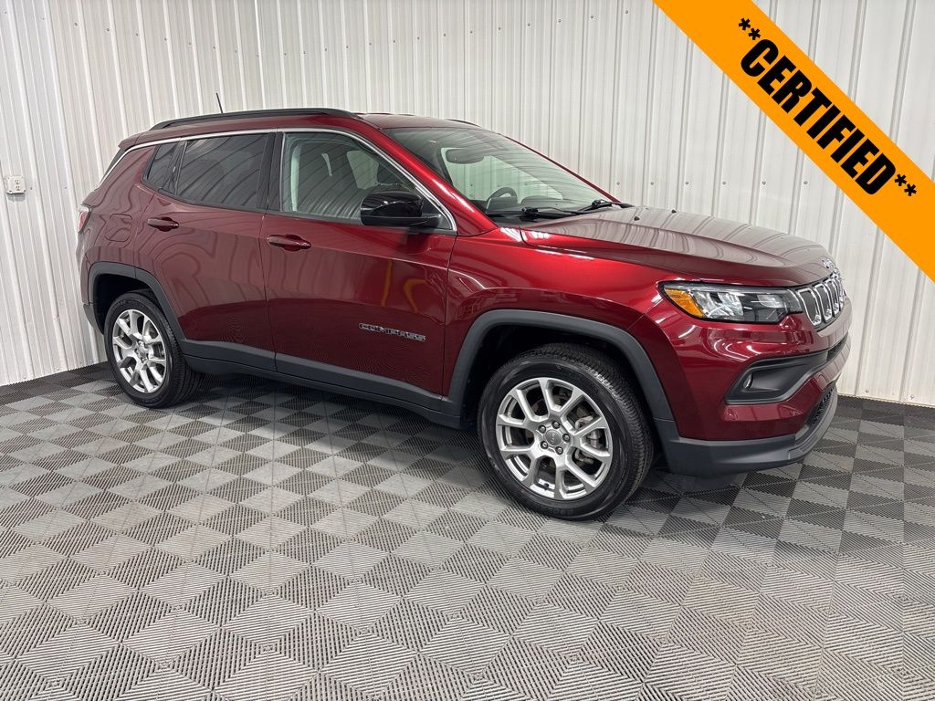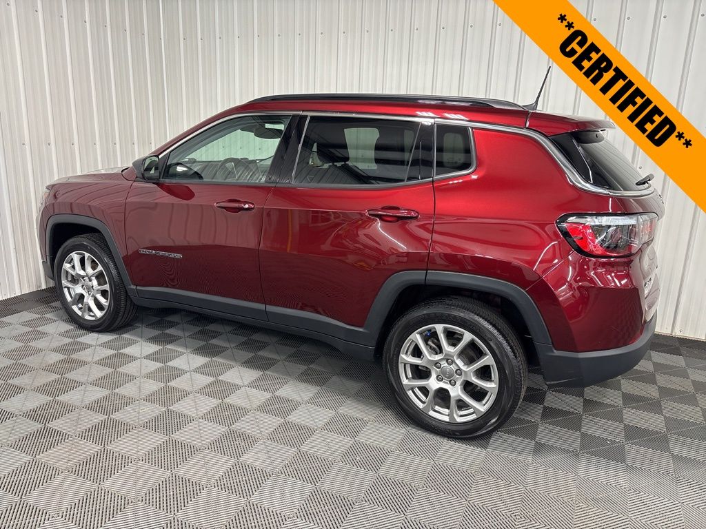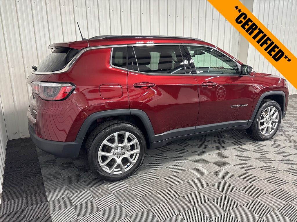 Compass Latitude Lux, 4WD, Velvet Red Pearlcoat, Black w/Leather Trimmed Bucket Seats, Heated front seats, Heated steering wheel, ParkView Rear Back-Up Camera, Radio: Uconnect 5 w/10.1" Display. Certified. 4D Sport Utility 9-Speed 948TE Automatic 2.4L I4 4WD Latitude Lux Velvet Red Pearlcoat