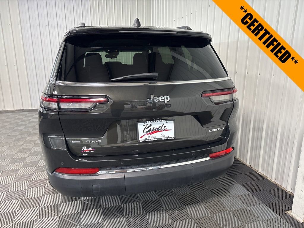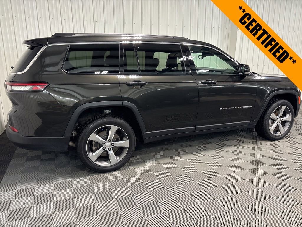 Grand Cherokee L Limited, 4WD, Rocky Mountain Pearlcoat, Global Black w/Capri Leather Seats, 506 Watt Amplifier, 9 Amplified Speakers w/Subwoofer, Apple CarPlay, Google Android Auto, GPS Navigation, Heated front seats, Heated rear seats, Heated steering wheel, Integrated Voice Command w/Bluetooth, ParkView Rear Back-Up Camera, Power Liftgate, Radio: Uconnect 5 Nav w/10.1 Display, Wheels: 20 x 8.5 Polished/Painted Aluminum. Certified. 4D Sport Utility 8-Speed Automatic 3.6L V6 24V VVT 4WD Limited Rocky Mountain Pearlcoat
