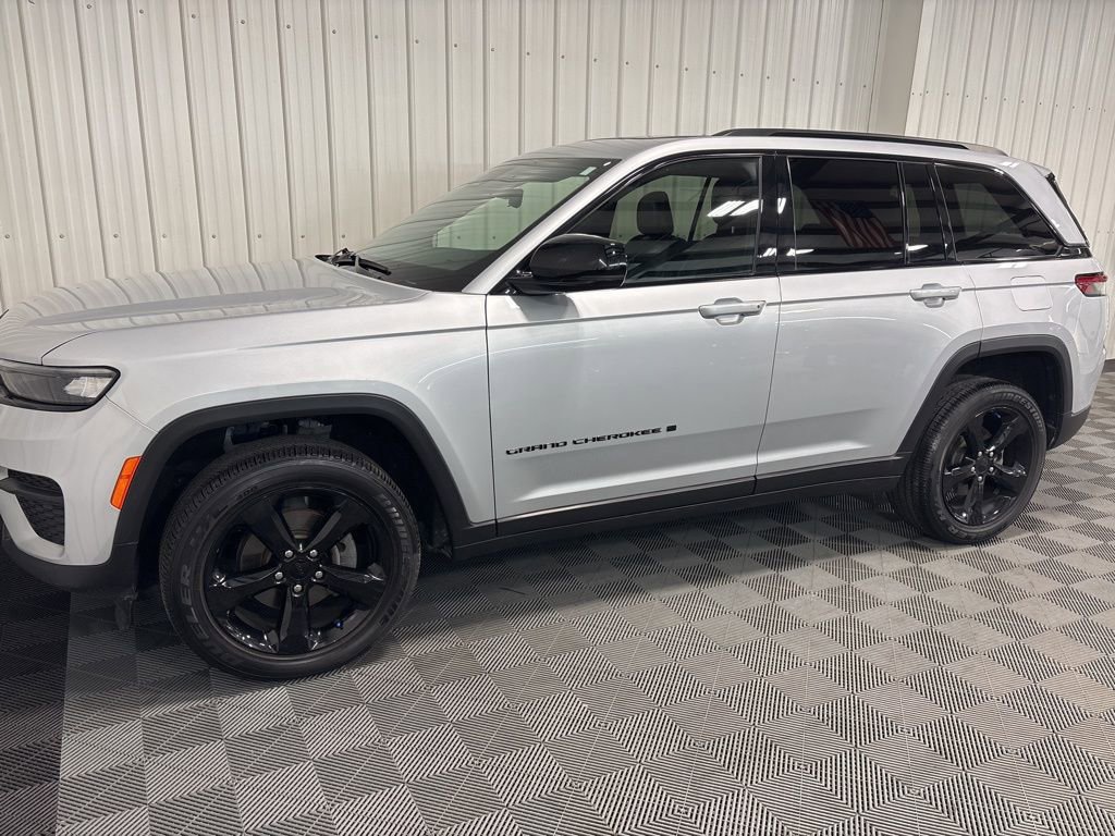 Grand Cherokee Altitude, 4WD, Silver Zynith, Global Black w/Leather Trimmed Bucket Seats, Altitude Appearance Package, Heated Front Seats, Heated Steering Wheel, Leather Trimmed Bucket Seats, Power Liftgate, Quick Order Package 22B Altitude, Radio: Uconnect 5 w/8.4 Display, Remote Start System, Wheels: 20 x 8.5 Gloss Black Painted Aluminum, Wireless Charging Pad. Certified. 4D Sport Utility 8-Speed Automatic 3.6L V6 24V VVT 4WD Altitude Silver Zynith