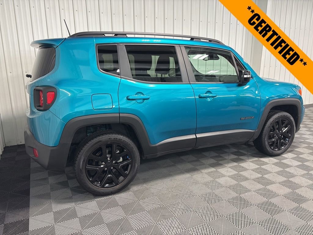 Renegade Altitude, 4WD, Bikini Metallic Clearcoat, Black w/Deluxe Cloth High-Back Bucket Seats, Altitude Package, Apple CarPlay/Android Auto, Convenience Group, Dual-Pane Panoramic Power Sunroof, Heated Front Seats, Heated Steering Wheel, ParkView Rear Back-Up Camera, Power 2-Way Driver Lumbar Adjust, Power Adjust 8-Way Driver Seat, Quick Order Package 22M Altitude, Radio: Uconnect 4C Nav w/8.4 Display, Sun/Sound Group, Wheels: 18 x 8.0 Gloss Black. Certified. 4D Sport Utility 9-Speed 948TE Automatic 1.3L I4 4WD Altitude Bikini Metallic Clearcoat