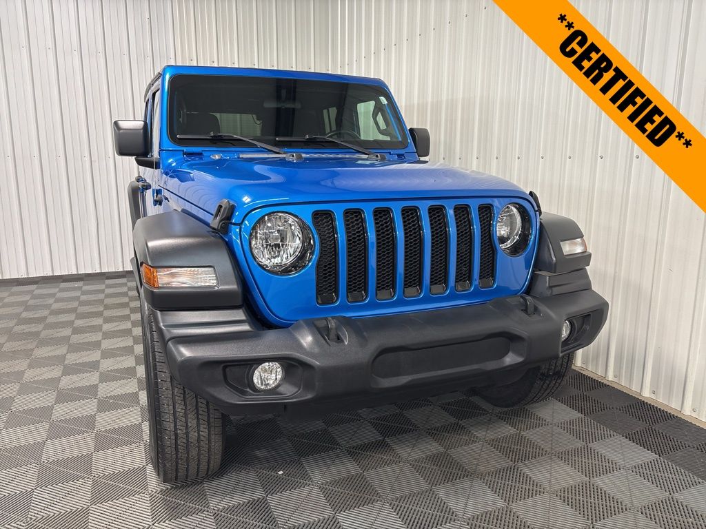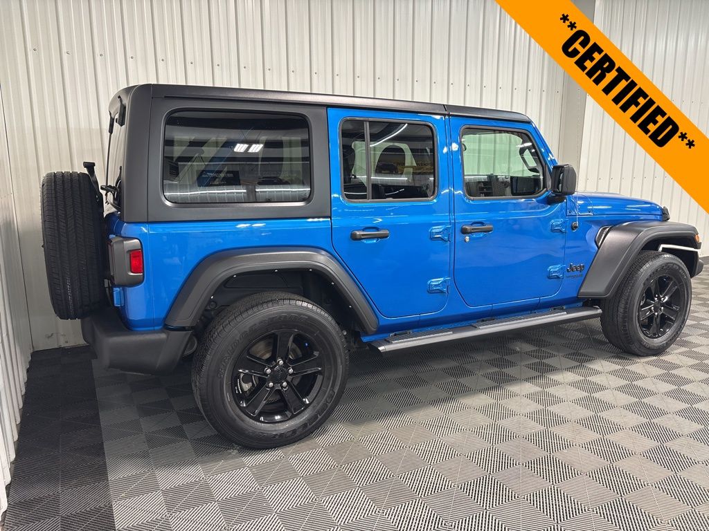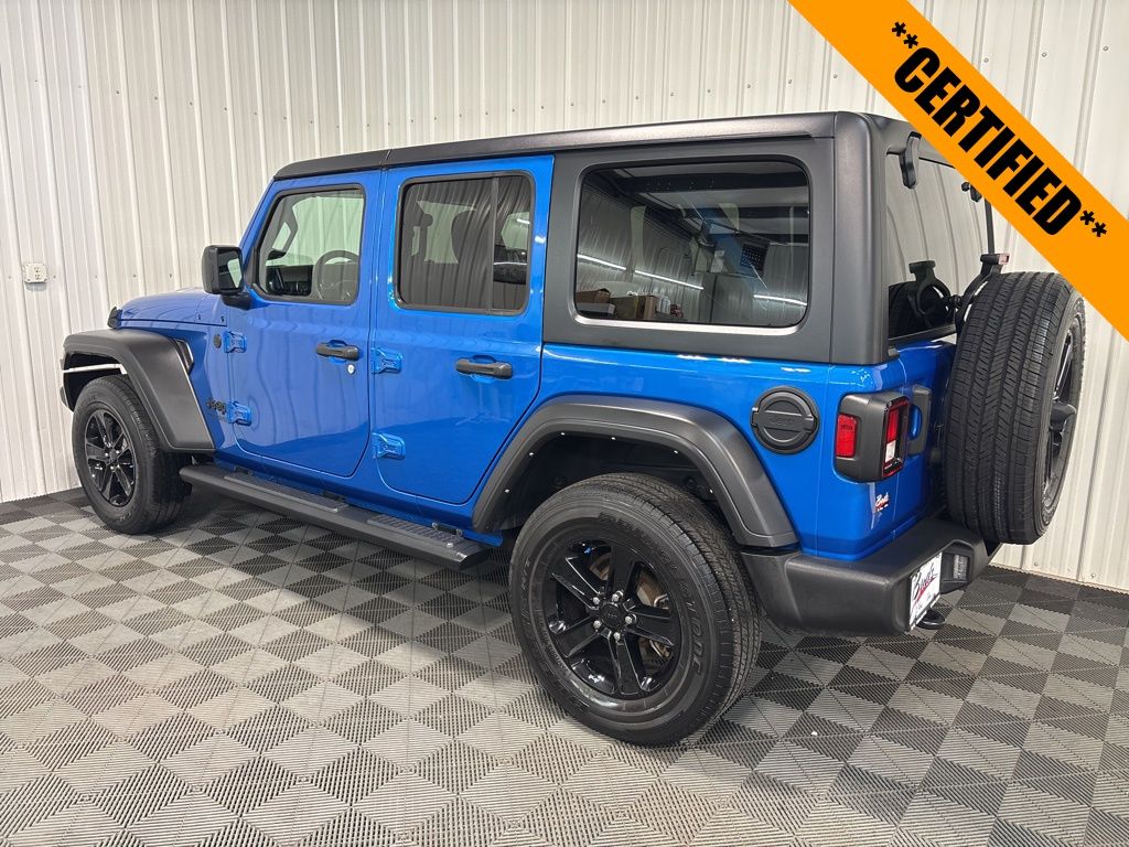 Wrangler Unlimited Sport Altitude, 4WD, Hydro Blue Pearl Coat, Black w/Cloth Low-Back Bucket Seats, Altitude Package, Black 3-Piece Hard Top, Cold Weather Group, Heated Front Seats, Heated Steering Wheel, MOPAR Hardtop Headliner, ParkView Rear Back-Up Camera, Quick Order Package 25L Altitude, Radio: Uconnect 4 w/7" Display, Remote Keyless Entry, Wheels: 18" x 7.5" Gloss Black Aluminum. Certified. 4D Sport Utility 8-Speed Automatic 3.6L V6 24V VVT 4WD Unlimited Sport Altitude Hydro Blue Pearl Coat