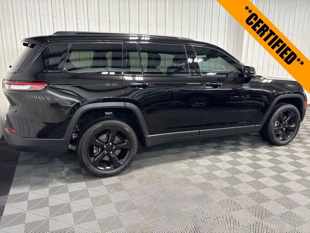 Grand Cherokee L Limited, 4WD, Diamond Black Crystal Pearlcoat, Global Black w/Capri Leatherette Seats, Black Appearance Package, Capri Leatherette w/Axis II Seats, Heated front seats, Heated rear seats, Heated steering wheel, Intersection Collision Assist System, Luxury Tech Group II, ParkSense Front/Rear Park Assist w/Stop, Power Liftgate, Radio: Uconnect 5 Nav w/10.1 Display, Surround View Camera System, Ventilated Front Seats, Wheels: 20 x 8.5 Gloss Black Painted Aluminum, Wireless Charging Pad. Certified. 4D Sport Utility 8-Speed Automatic 3.6L V6 24V VVT 4WD Limited Diamond Black Crystal Pearlcoat