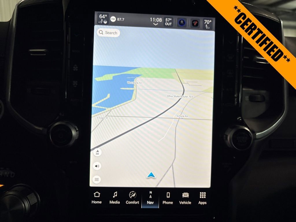 1500 Laramie, HEMI 5.7L V8 Multi Displacement VVT eTorque, 4WD, Billet Silver Metallic Clearcoat, Black w/Leather Trimmed Bucket Seats, Apple CarPlay, Blind Spot & Cross Path Detection, Electric Shift-On-Demand Transfer Case, Google Android Auto, GPS Navigation, Heated Front Seats, Heated Steering Wheel, Integrated Voice Command w/Bluetooth, Laramie Level 1 Equipment Group, ParkSense Front/Rear Park Assist w/Stop, ParkView Rear Back-Up Camera, Power 8-Way Driver & Passenger Seats, Radio: Uconnect 5 Nav w/12.0 Display, Sport Appearance Package, Sport Performance Hood, Ventilated Front Seats, Wheels: 20 x 9 Premium Painted w/Inserts. Certified. 4D Crew Cab 8-Speed Automatic HEMI 5.7L V8 Multi Displacement VVT eTorque 4WD Laramie Billet Silver Metallic Clearcoat