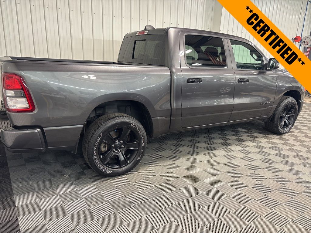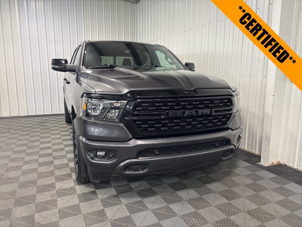 1500 Big Horn/Lone Star Night Edition, HEMI 5.7L V8 Multi Displacement VVT eTorque, 4WD, Granite Crystal Metallic Clearcoat, Black w/Deluxe Cloth Bucket Seats, 9 Amplified Speakers w/Subwoofer, Anti-Spin Differential Rear Axle, Apple CarPlay, Big Horn Level B Equipment Group, Class IV Receiver Hitch, Google Android Auto, GPS Navigation, Heated Front Seats, Heated Steering Wheel, Integrated Voice Command w/Bluetooth, Night Edition, ParkSense Front/Rear Park Assist w/Stop, Power-Folding Mirrors, Radio: Uconnect 5 Nav w/12.0" Display, Remote Start System, Wheels: 20" x 9.0" Premium Paint/Polished. Certified. 4D Crew Cab 8-Speed Automatic HEMI 5.7L V8 Multi Displacement VVT eTorque 4WD Big Horn/Lone Star Granite Crystal Metallic Clearcoat
