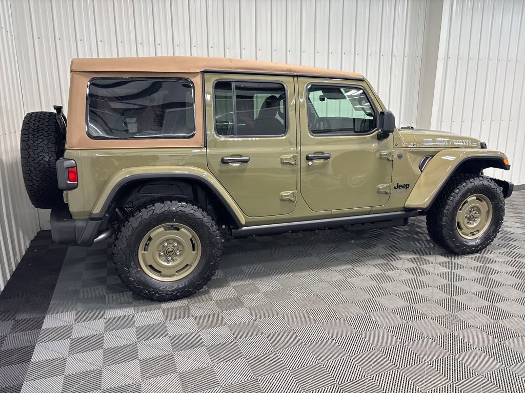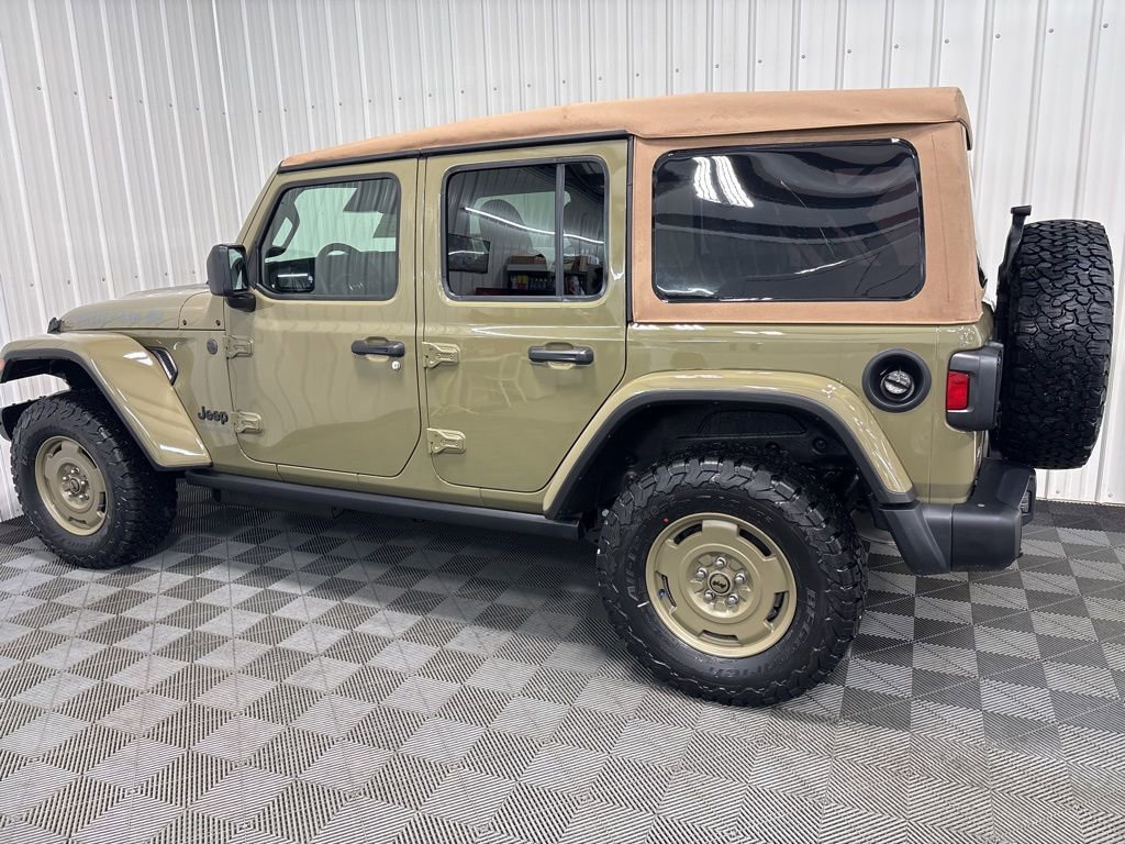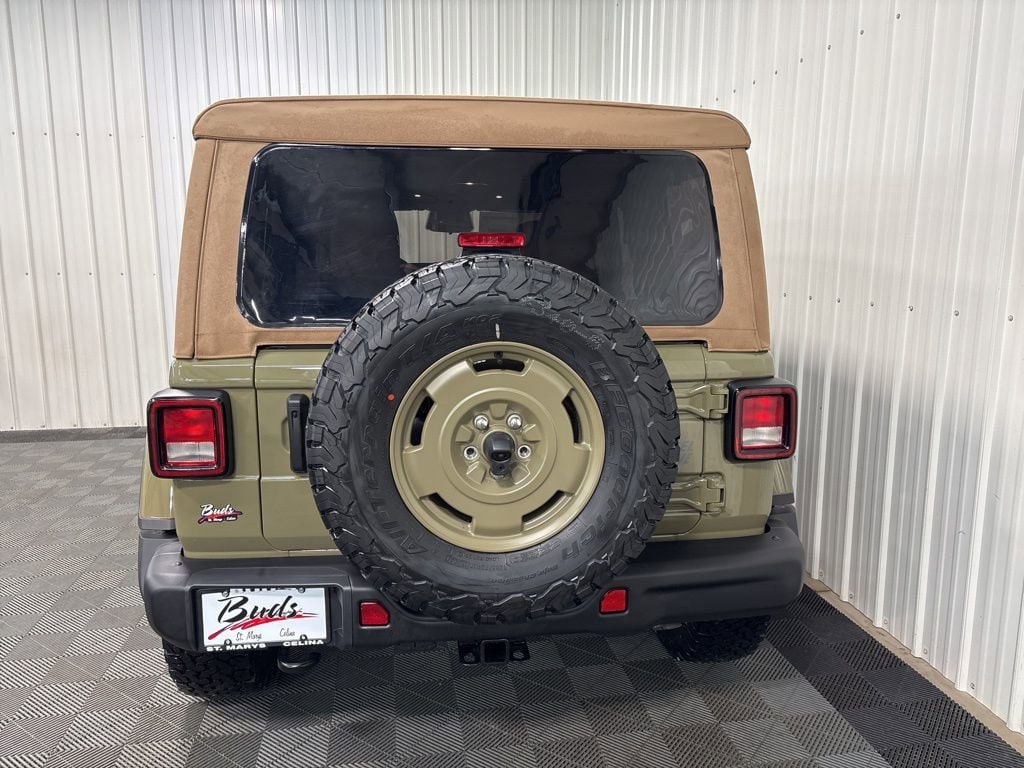 the toughest trails! 4D Sport Utility 41 Wrangler Willys '41 Edition, 3.6L V6 24V VVT, 4WD, 41, 2-Door Passive Entry, Front Door Locks, 4.10 Rear Axle Ratio, 4WD Willys '41 Swing Gate Decal, 7 and 4 Pin Wiring Harness, 97 MPH Vehicle Max Speed Calibration, Adaptive Cruise Control with Stop, Advanced Brake Assist, Air Conditioning with Auto Temp Control, Air Filtering, Automatic Headlamps, Auxiliary Switches, Body Color Grille with Gloss Black Rings, Body Color Rubicon Highline Flare, Class II Receiver Hitch, Cloth Low-Back Bucket Seats, Cluster 7.0 TFT Color Display, Convenience Group, Conventional Differential Front Axle, Corning Gorilla Glass, Dana M210 Wide HD Tube Front Axle, Dana M220 Wide Rear Axle, Daytime Running Lamps LED Accents, Deep Tint Sunscreen Windows, E-Locker Rear Axle, Emergency/Assistance Call, Front LED Fog Lamps, Full Speed Forward Collision Warning Plus, Heated Front Seats, Heated Steering Wheel, LED Premium Reflector Headlamps, MOPAR All-Weather Floor Mats, Off-Road Plus Mode, Power Dome Dual Vented Hood, Power Heated Mirrors, Premium Tan Sunrider Soft Top, Premium Wrapped Steering Wheel, Quick Order Package 24H Willys 41, Security Alarm, Steel Front Bumper, Steel Power Dome Hood Package, Steel Rear Bumper, Sun Visors with Illuminated Vanity Mirrors, Universal Garage Door Opener, Wheels: 17 x 7.5 Fully Painted, Willy's Suspension, Willys '41 Retro Edition Buzz Model, Willys '41 Retro Edition Hood Decal, Willys '41 Retro Edition Tailgate Plaque, Willys '41 Retro Edition Wrangler Decal, Willys '41 Retro Shift Bezel Insert, Willys '41 US Edition U.S. Hood Decal.