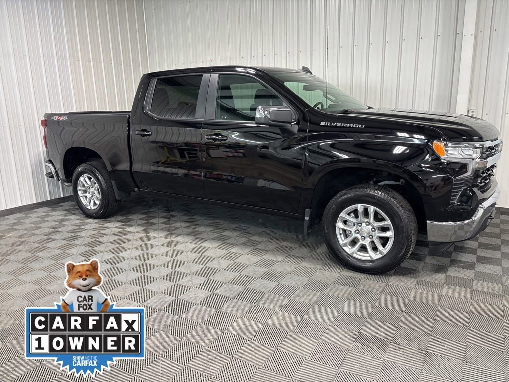 Silverado 1500 LT, 4WD, Black, Jet Black w/Cloth Seat Trim, 10-Way Power Driver Seat w/Lumbar, Apple CarPlay/Android Auto, Convenience Package, Dual-Zone Automatic Climate Control, Heated Driver & Front Outboard Passenger Seats, Heated Steering Wheel, Lane Keep Assist w/Lane Departure Warning, Wheels: 18 x 8.5 Bright Silver Painted Aluminum. 4D Crew Cab 8-Speed Automatic 2.7L Turbo 4WD LT Black